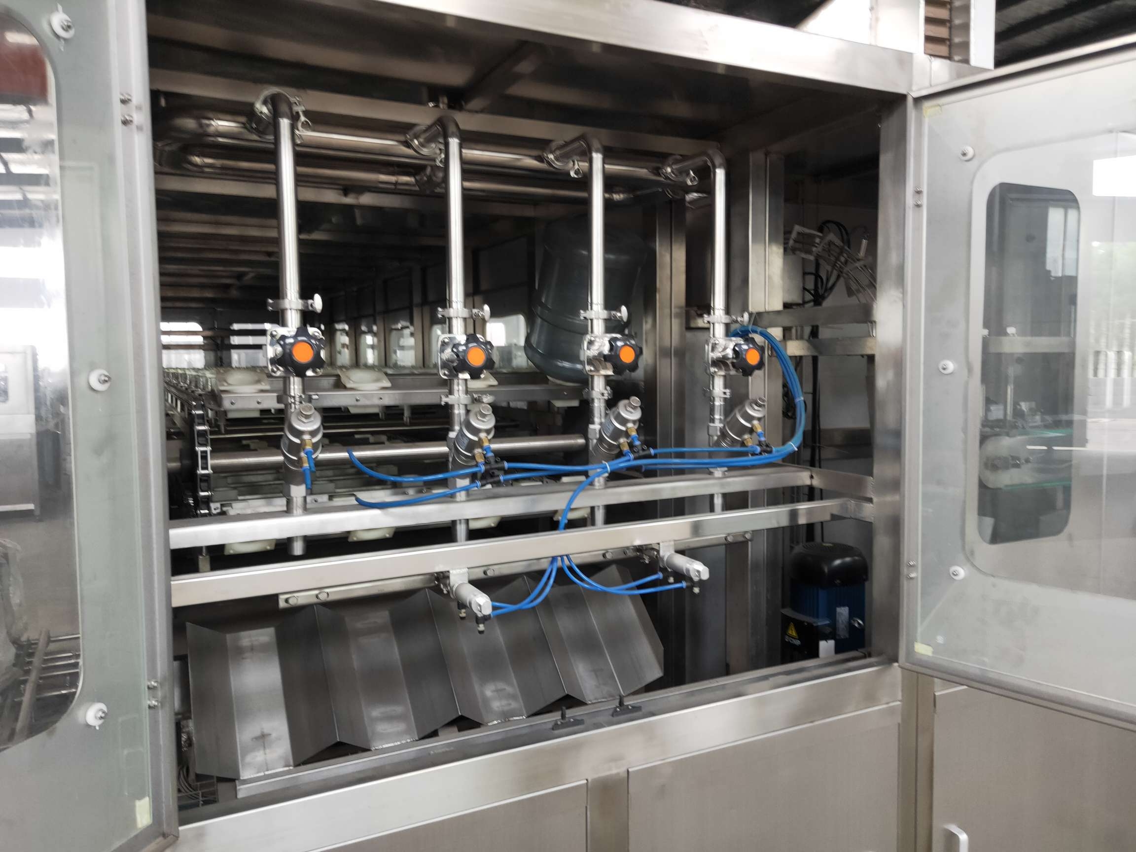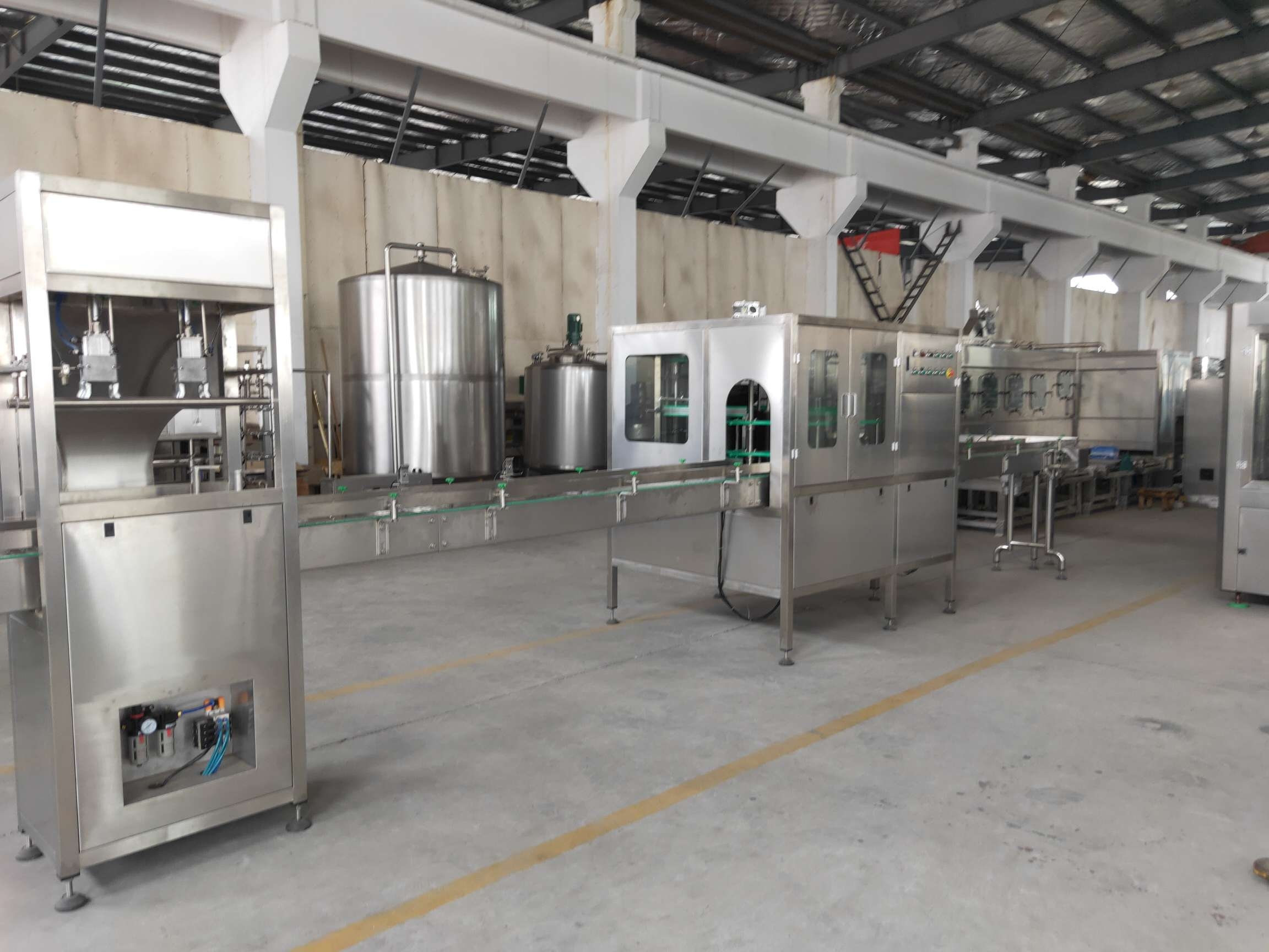 5加仑大桶水灌装生产线分为自动拔盖,刷桶,上桶,冲洗,灌装,压盖,人工套膜,收缩膜,自动套袋等一系列动作,该生产线工作效率高性能稳定,自动化程度高,电气原件均采用进口品牌,欢迎整套咨询具体可按需方要求定制。 |