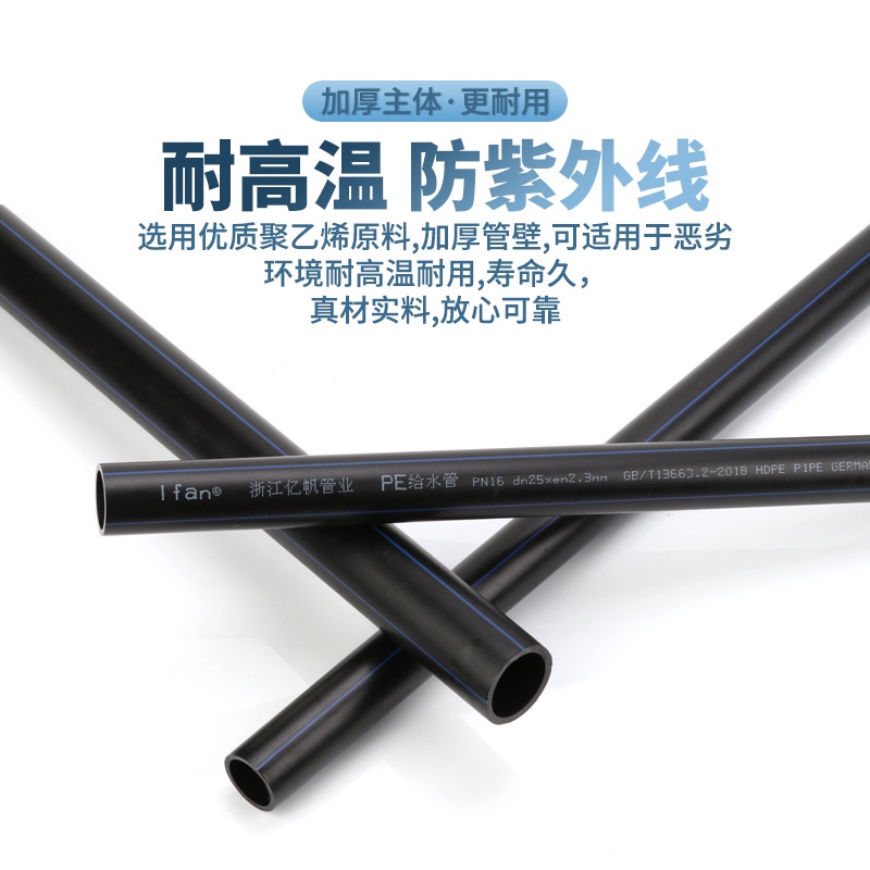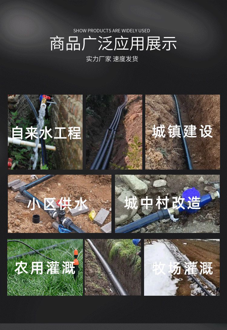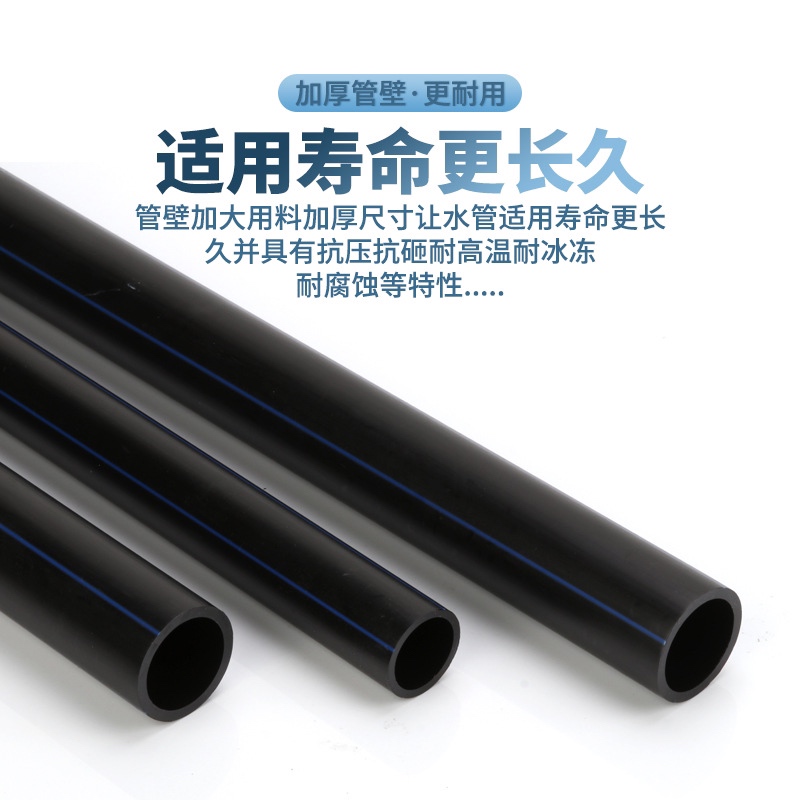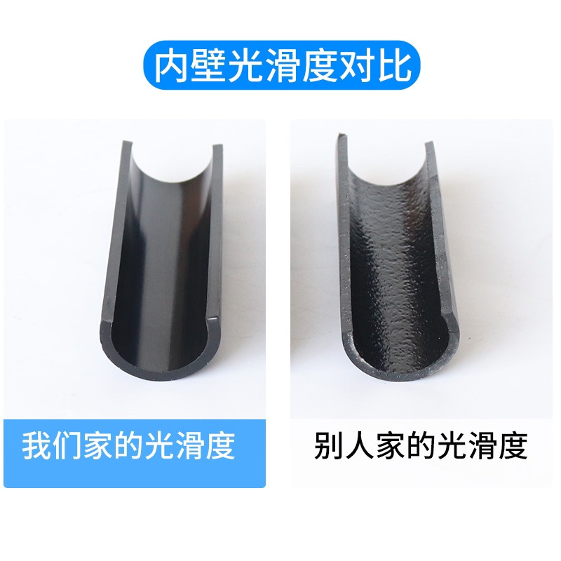 内壁光滑.摩擦阻力小卫生性能好.无任何添加剂产品采用ISO标准定级聚乙烯材料为100级全新料不生霉材料长期使用也不积垢