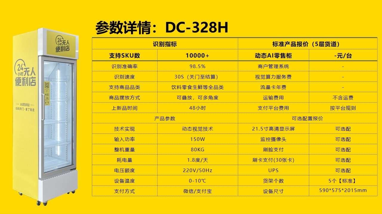 个人养 占地1平米,应用场景多! 自由拿取,销售更多! 售卖自由,品类更多! 多 实时提现,到账快! 轻松操作,上货快! 经营稳定,回本快! 快 蓝海市场,前景好!大厂做工,品质好!专业团队,服务好! 好 省人工、场地、省钱!上货轻松简单,省时!远程监控销售,省心! 省 智能售货机能带来什么? Wh a t wi l l sma rt v e n d i n g b ri n g ? 目前中国在铺设的冰柜1500万左右,AI零售柜潜在场景3000万个 • 各种住宿场景:学生宿舍楼、公寓、小区、88.4万家酒店、其他… • 各种公众场所:医院、景点、运动场馆、交通枢纽、电影院、充电站、其他…… • 各种办公场所:写字楼、工厂、银行、房产中介门店、其他…… • 各种娱乐场景:KTV、剧本杀门店、密室逃脱门店、按摩洗浴、轰趴馆、其他…… • 各种快递网点:中国100万个社区,每个社区周围3-5个快递网点和社区团购网点…… • 各种高人流门店:600万个餐饮场景、各类服装店…… • 各种零售场景做朝街营业和夜间营业:700万家夫妻老婆店…… |