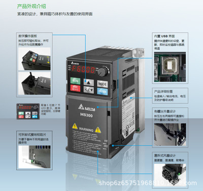 货源类别系列:MS300|型号:VFD1A5MS43ANSAA 0.4K,VFD2A7MS43ANSAA 0.75K,VFD4A2MS43ANSAA 1.5K,VFD5A5MS43ANSAA 2.2K,VFD9A0MS43ANSAA 3.7K,VFD13AMS43ANSAA 5.5K,VFD17AMS43ANSAA 7.5K,VFD25AMS43ANSAA 11K,VFD32AMS43ANSAA 15K,VFD38AMS43ANSAA 18.5K,VFD45AMS43ANSAA 22K|货号:VFD4A2MS43ANSAA|订货号:VFD4A2MS43ANSAA|产地:中国|是否进口:否|原产国/地区:中国|应用范围:通用|电源相数:380V|额定电压:380V|供电电压:400V|适配电机功率:0.4KW|滤波器:不带|直流电源性质:交流|控制方式:电压|输出电压调节方式:3相|额定电流:1.5A|物料编号:0001|外形尺寸(宽x高x厚):110*120*75|有可授权的自有品牌:有|外型:塑壳|品牌:台达。
