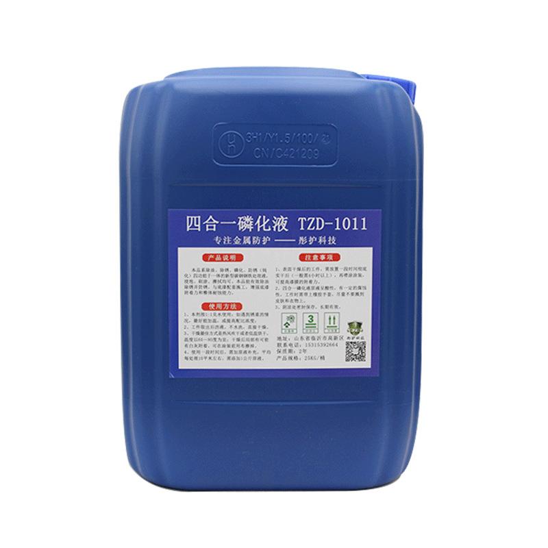 产地:山东|是否进口:否|产品规格:25kg/桶|货号:TZD-1011|执行标准:国标|主要用途:钢铁涂装前处理|品牌:彤之盾|系列:磷化液|型号:除锈型(2-3倍液),除油型(10-15倍液)|产品名称:四合一除锈磷化液|订货号:TZD-1011|是否危险化学品:否|状态:液体|功效:除锈防锈一体|外观:淡绿色透明液体|产地:山东|是否进口:否|产品规格:25kg/桶|货号:TZD-1011|执行标准:国标|主要用途:钢铁涂装前处理|品牌:彤之盾|系列:磷化液|型号:除锈型(2-3倍液),除油型(10-15倍液)|产品名称:四合一除锈磷化液|订货号:TZD-1011|是否危险化学品:否|状态:液体|功效:除锈防锈一体|外观:淡绿色透明液体