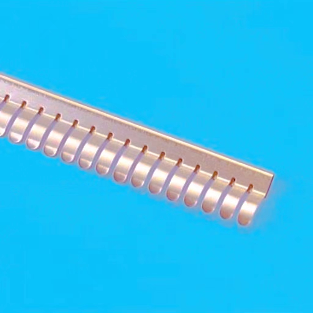 铍铜屏蔽黄片 巧振五金生产的铍铜簧片由进口铍铜精制而成,铍铜是一种高性能的金属,其特性使其成为理想的电磁干扰和射频干扰屏蔽产品材料,铍铜本身具有的机械性能不仅容易制造出更多的形状,以配合不同的使用要求和安装方式,更重要的是在外力释放后,铍铜簧片表现出来的恢复能力,可以满足频繁启合柜门等运动部件电连接的应用要求。 |