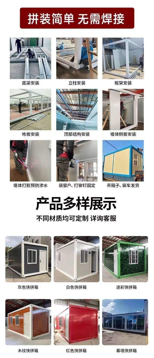 【商品介绍】旻家集装箱,优质的服务,住人集装箱快拼箱,可定制,优质材料 【商品特点】标准箱3*6*2.8共18个平方,可快速拼接,快捷方便 【注意事项】拍下后请联系客服 【物流服务】请联系客服 【价格说明】价格不含安装及运费 【售后须知】请及时沟通客服 |