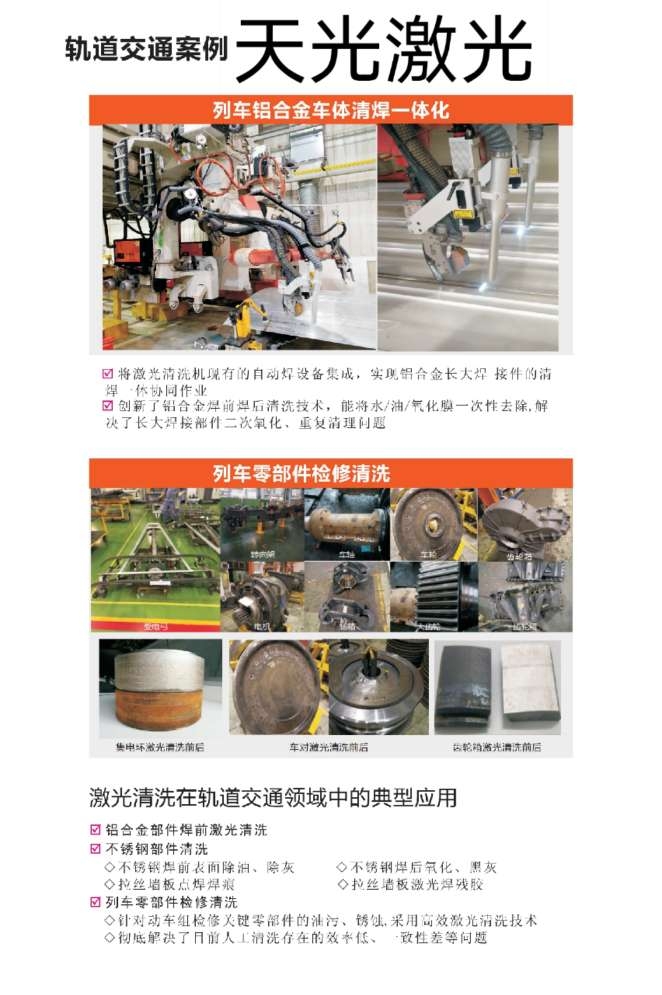 激光清洗是新一代表面清理的高科技产品,易于安装、操控和实现自动化。操作简单,接通电,打开设备,即可进行无化学试剂、无介质、无尘、无水的清洗,可自动对焦,贴合曲面清洗,清洗表面洁净度高等优势,能够清除物件表面树脂、油污、污渍、污垢、绣浊、涂层、镀层、油漆、焊斑,用于磨具清洗翻新,航天航空,铁路保养,船舶行业,轮胎行业,汽车制造业等 |