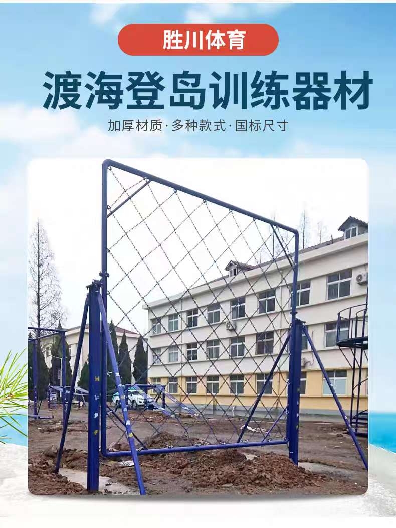 产地:河北省沧州市|材质:钢木结合|颜色:军绿色|品牌:胜川|产品分项:软梯 螺旋梯 高低横木 绳网 轮胎攀台 摇摆平台 晃动横梯 跨网 阻绝墙 模拟沙滩|工艺:静电喷涂|适用场所:训练基地