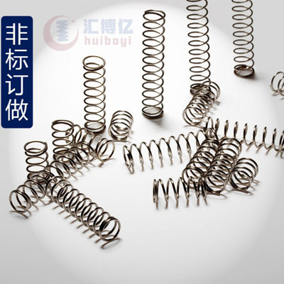 货源类别订货号:钢丝弹簧|品牌:汇博亿弹簧|货号:挤压弹簧|型号:压缩弹簧|弹簧外径:10 , 20 , 30 , 25 , 40(mm)|弹簧内径:10 , 20 , 30 , 25 , 40(mm)|自由高度:30 , 80 , 60 , 300 , 定制(mm)|是否标准件:非标准件|标准编号:圆线弹簧|材质:不锈钢线|用途:汽车,礼品、工艺品,自行车,电池,锁具,电器,开关,模具,灯具,玩具,五金,多种用途,夹具,沙发,电子通讯|钢丝直径:0.08-12(mm)|节距:0-12(mm)|旋向:多款供选|形状:圆柱|压缩强度极限:10(N/S)|表面处理:本色|样品或现货:现货|负荷:100|适用范围:五金 , 玩具 , 汽车 , 模具 , 电池|颜色:本色|使用次数:200000|压紧高度:13(mm)|是否跨境出口专供货源:否|是否可定制:可定制不同尺寸规格压缩弹簧|定制热线:13425467292|厂家地址:广东